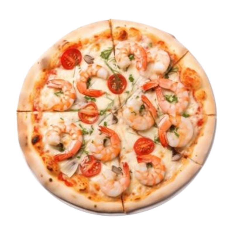Sauce tomate, mozzarella, moules, palourdes, crevettes, calamars, origan.